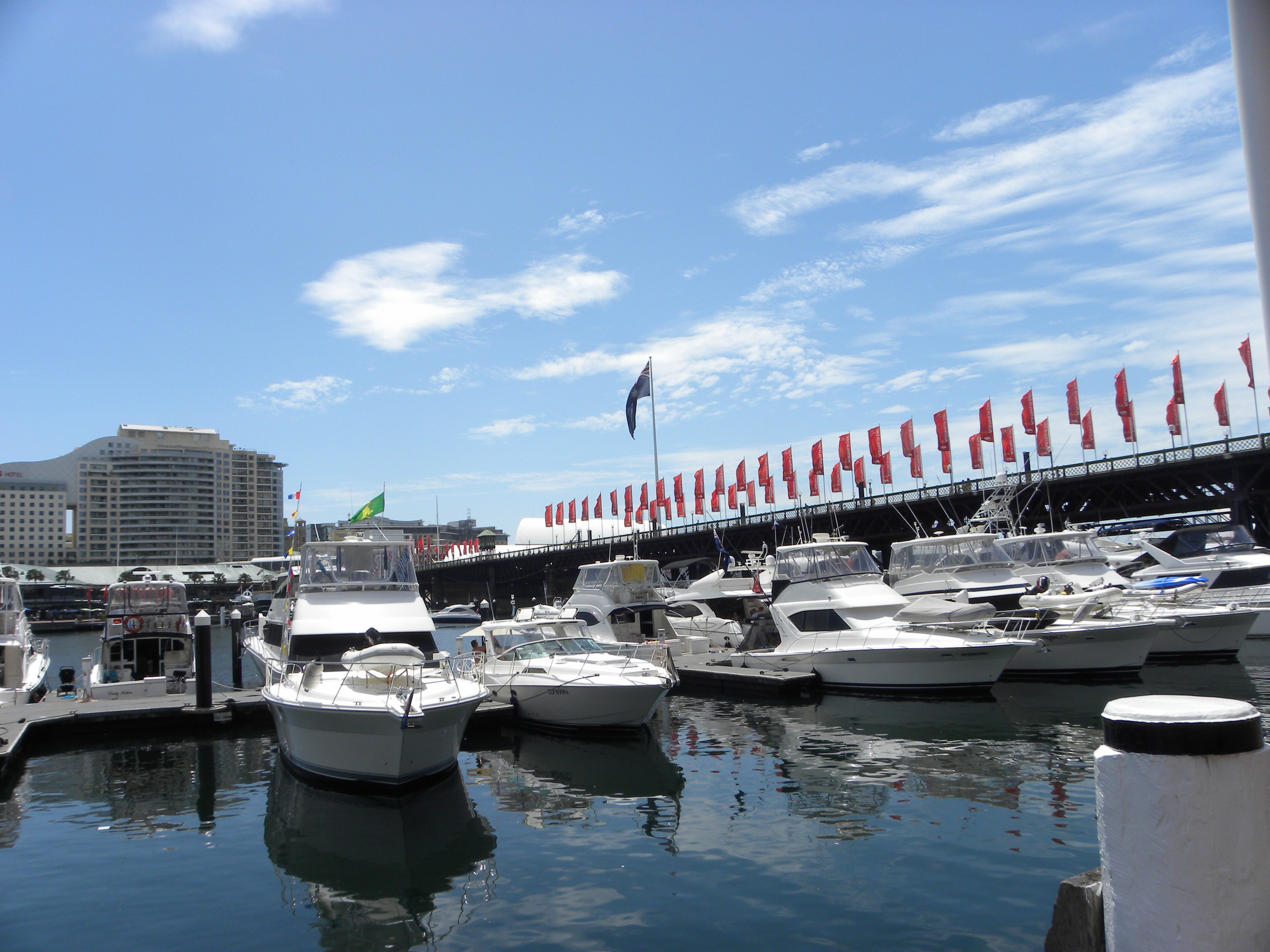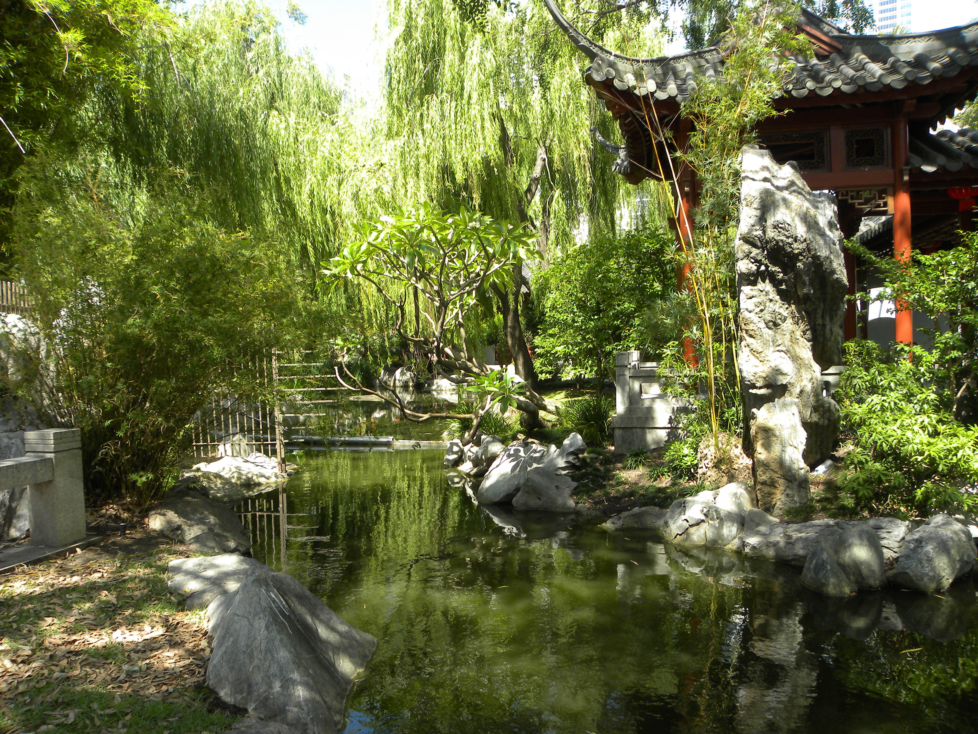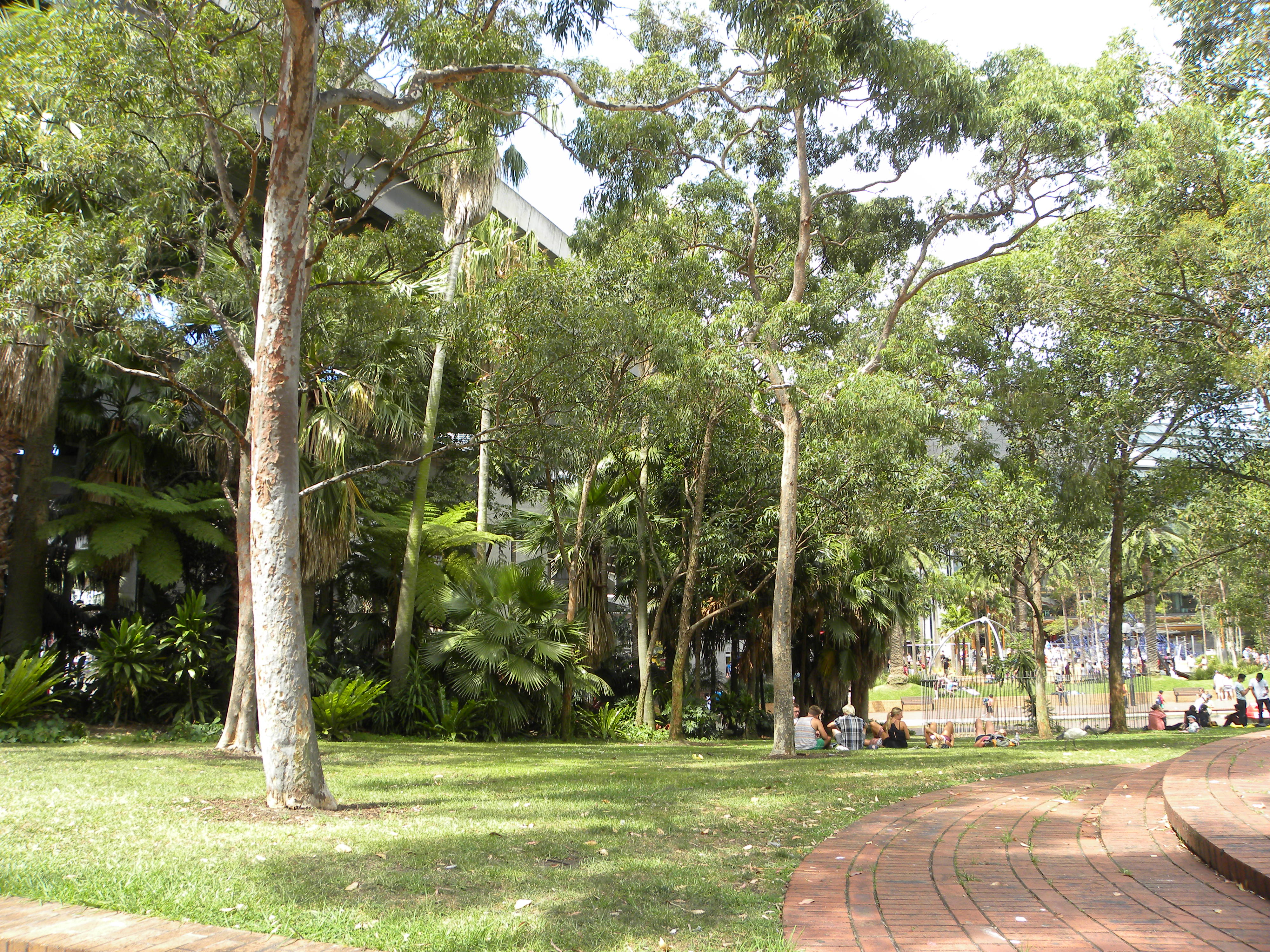 The aquarium took about 2-1/2 hours to go through. The aquarium was very accessible and well maintained. There are 2 series of ramps going down to the large aquarium tanks. The ramps have about 8 switch backs about 20 feet long each. I was able to wheel up these with no problem. After the aquarium I wheeled around Darling Harbour for about 3 hours. The harbor is quite accessible with a fair amount of accessible bathrooms. I went up through Palm Groove to the Chinese Garden.
