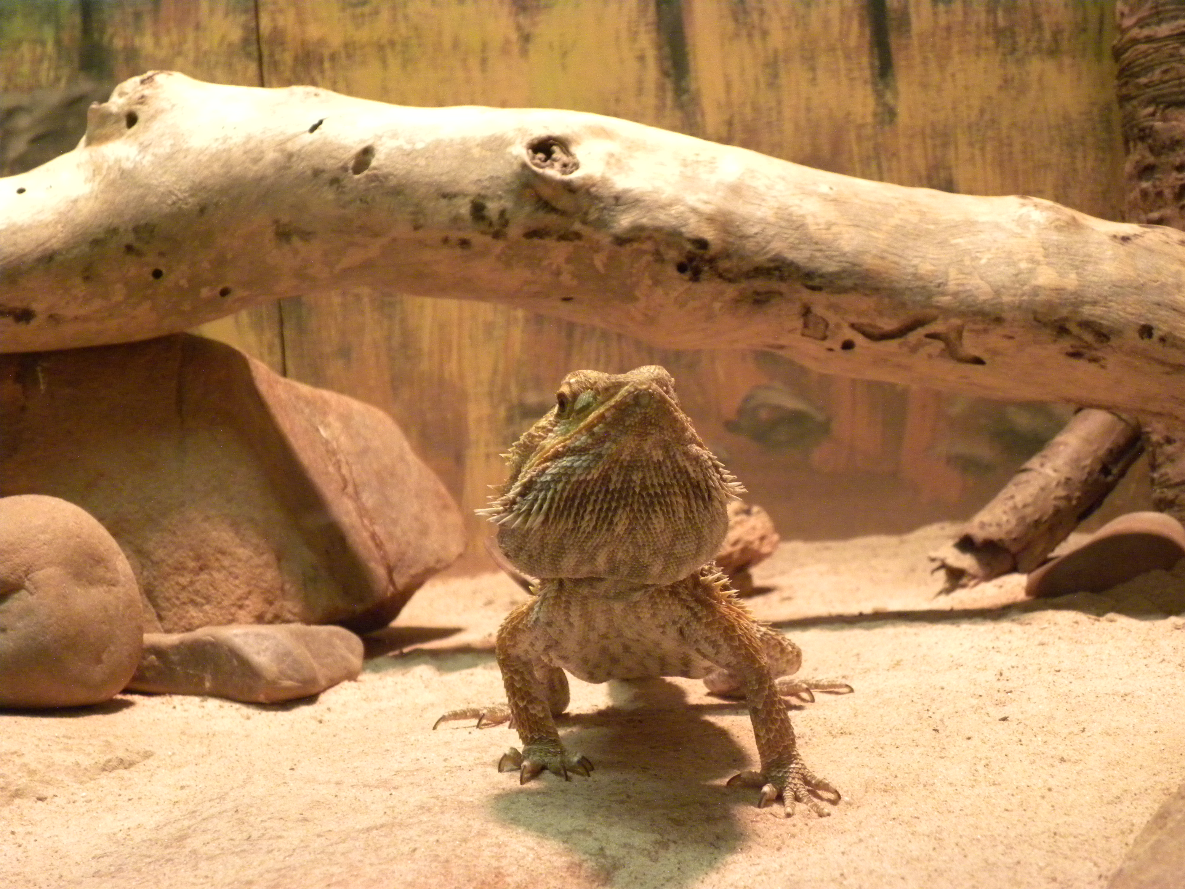 After seeing these crocs from below I make my way to the second floor. They have an elevator to the 2nd and 3rd floors and a lift to the baby crocodile area located through the reptile display. The 2nd floor has an top view of the crocodiles I just saw through the glass. The 2nd floor also has a display of many different kinds of stuffed crocodiles and where I got to hold a baby croc only 3 months old at 18″ long. The entrance door to this area is a little heavy. The 2nd floor also a platform to feed crocodiles 4-5 years old by a fishing pole. The staff does talks and demonstrations throughout the day about the fish, crocodiles and reptiles. They also have crocodile feedings and a reptile area where you can hold a few reptiles.