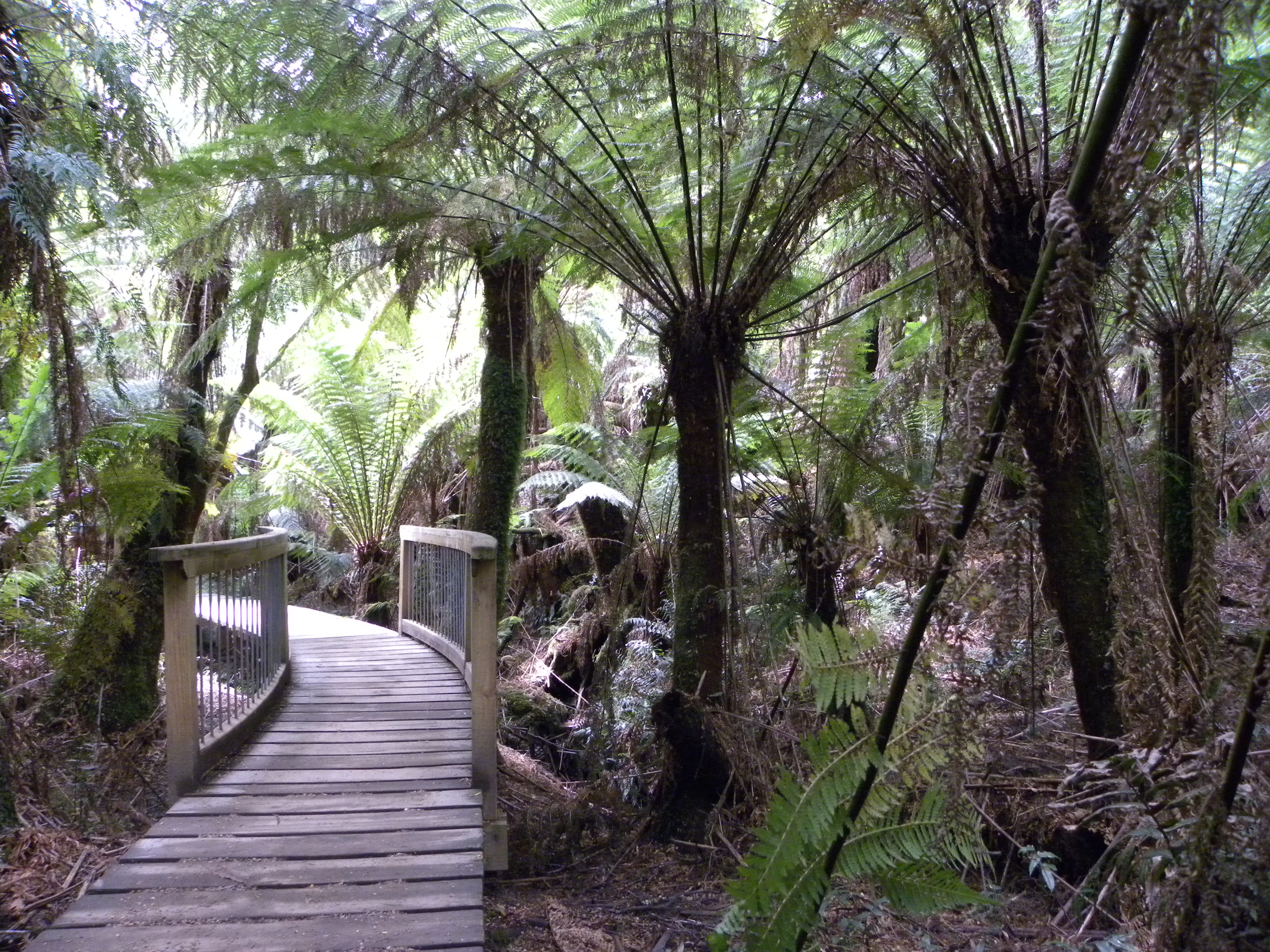 After the Koalas we have lunch overlooking Apollo Bay. There is a ramp with a slight grade that goes down to the beach. Most of the area around Apollo Beach is flat. After lunch we go for a bush walk at Maits Rest in Great Otway National Park. No where close to being accessible. With the great help from Jason, Dave and Juan I was able to make through the entire bush walk. It has very steep up and down slopes on dirt with some places having wood decking. I’m very happy everyone helped out because I know it was not easy for them but it was well worth it. There is no way to make Maits Rest wheelchair accessible.