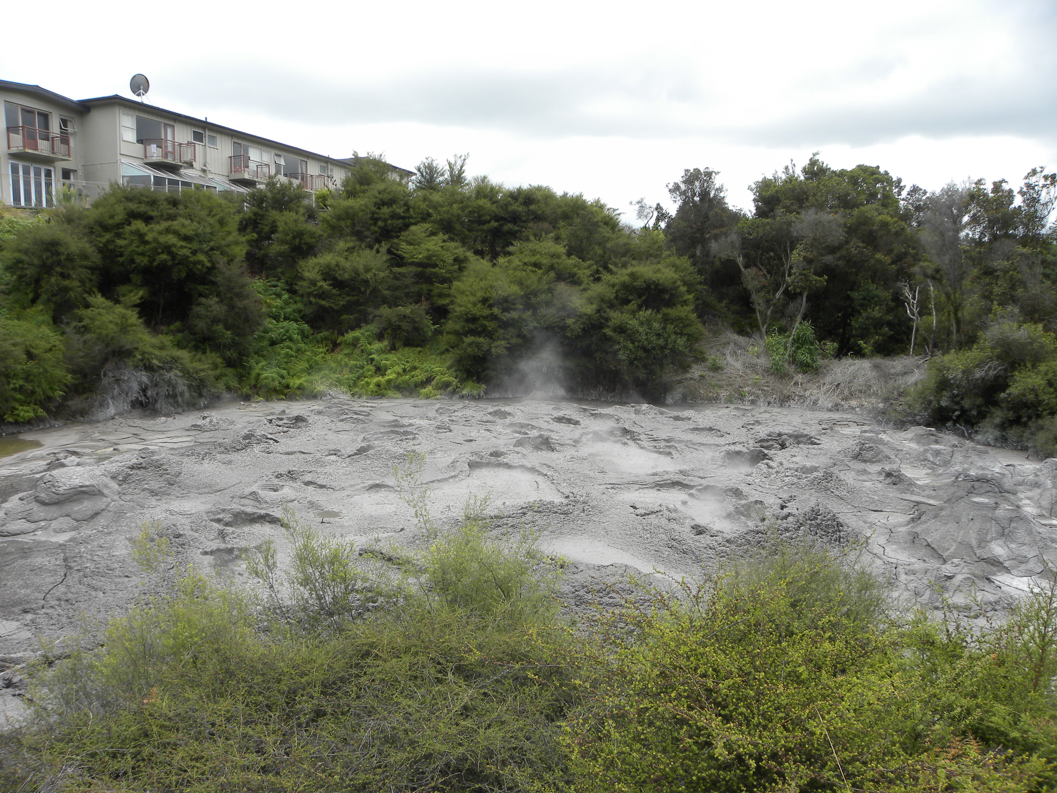 Mike picks me up from Rainbow Springs then we head to Te Puia for lunch, to see the geyser and traditional Maori houses. Lunch was Hangi, a traditional Maori way of cooking with heated rocks buried in a pit. This Hangi was chicken, corn, sweet potato and stuffing. Lunch was excellent. After lunch, I first go see the mud pools then to Kereru Geyser, Prince of Wales Feathers Geyer and Pohutu Geyser. There is a steep hill to get to the mud pool that I was able to go down myself. There is a shorter steep hill to the geysers I was able to go down and get up myself. The pathways to the geysers are paved except the area by the geyser which is very hard packed dirt that is very uneven. There is much more to see but these are the only areas accessible by wheelchair. I needed pushed back up the hill by the mud pool. I see no way to make this less steep because the paved walkway follows the natural terrain. There is an accessible bathroom at Te Puia.