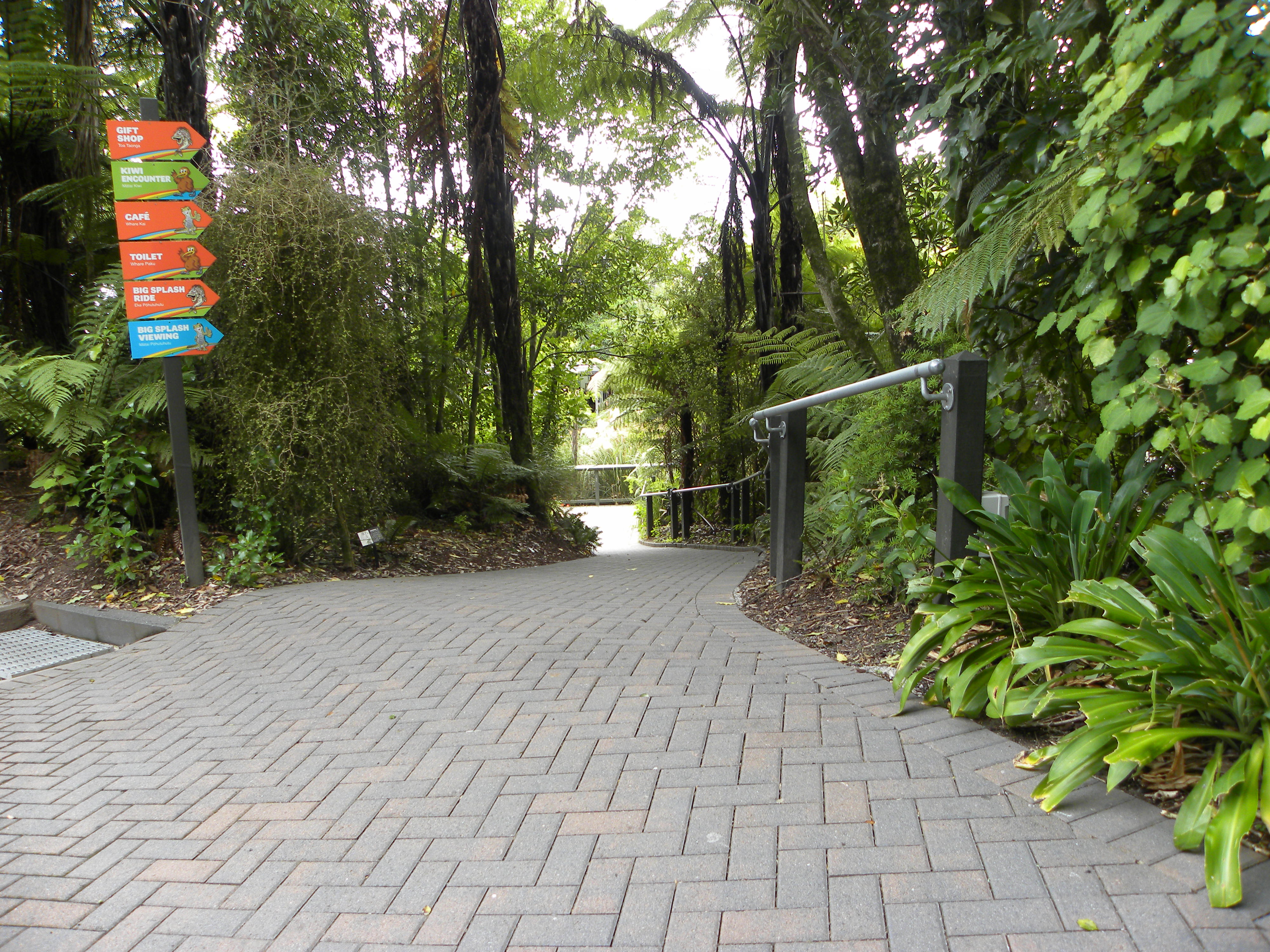 This tour visits Rotorua with stops at Rainbow Springs, Te Puia and Wai-O-Tapu. I’m picked up in a mini bus by Mike from Flexi Tours. This mini bus is similar to a Toyota HiAce but the door on this bus did not open all the way so it was a little difficult to transfer from the floor to the seat, just not a lot of room. There are 4 other people on the tour. Flexi Tours gives you the option to choose 2 different things to see based on your likes. The two I picked are Rainbow Springs and Wai-O-Tapu. I’m the only one who chooses these two options. Some other options are Hobbiton, to see sites from Lord of the Rings but the buses that take you to the sites are not wheelchair accessible, a day at the spa and Waitomo Caves, which is not wheelchair accessible. Rainbow Springs is a wildlife park with mostly reptiles, birds and fish. It is fairly accessible with mostly hills with slight grades except getting to the kiwi exhibit. This is a very steep hill I did not try to go down. That is the only area I was not able to see. The wildlife park does have an accessible bathroom.